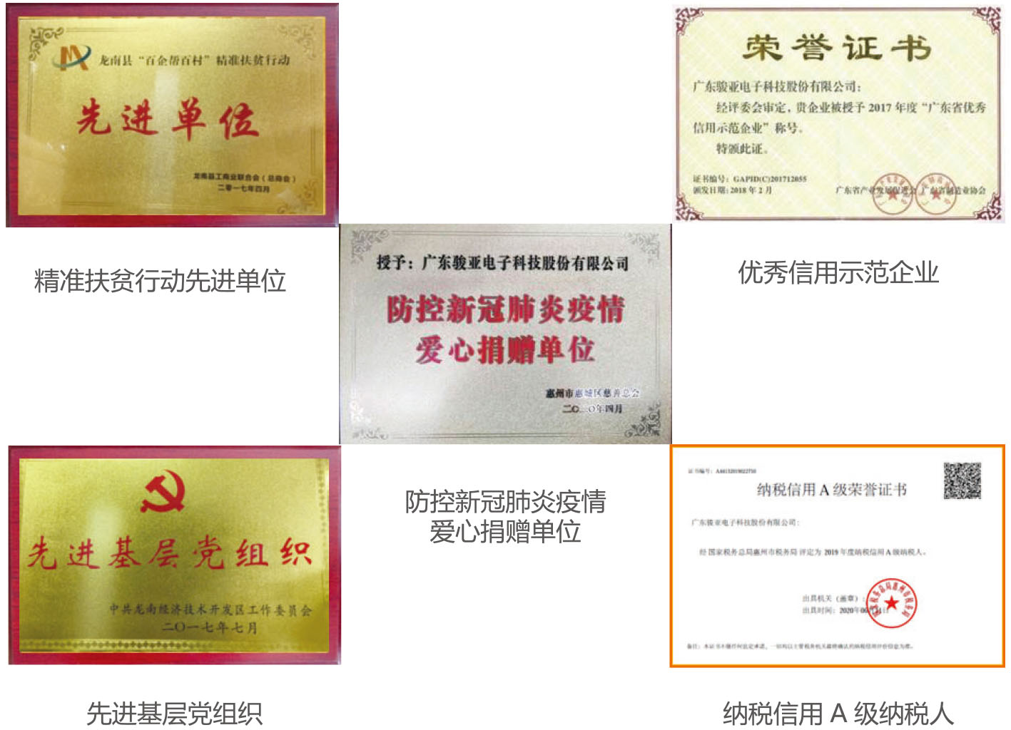 骏亚科技严格遵守各项法律法规要求,积极落实绿色生产和安全环保工作。诚信纳税、精准扶贫,为社会贡献自己的一份力量。